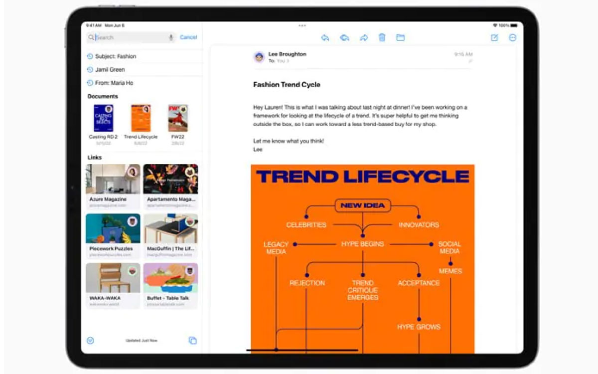 Anche Mail si rinnova. Numerose novità per il client Mail di iPadOS 16, fra cui la possibilità di annullare l’invio e di programmare le mail da inviare.