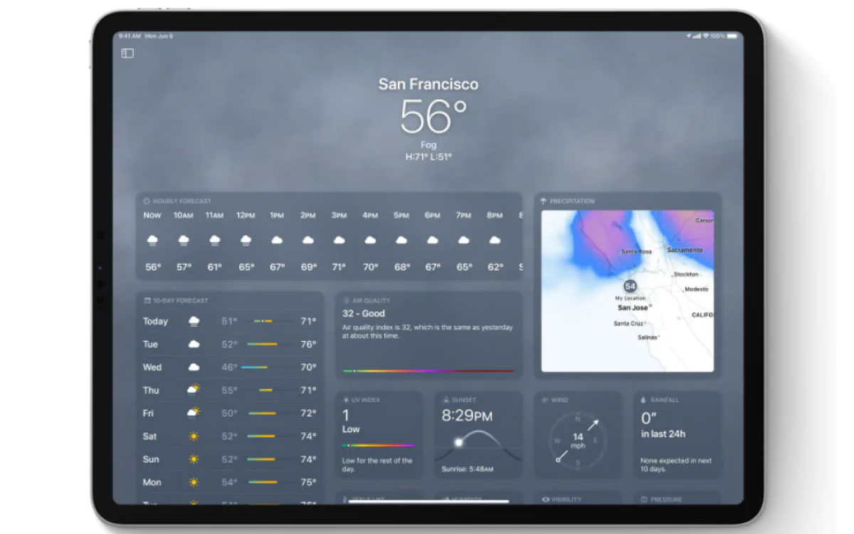 Adattiva allo schermo iPad, l’app Meteo appare ottimizzata per i grandi display, con una visualizzazione chiara e piacevole per l’esperienza utente.