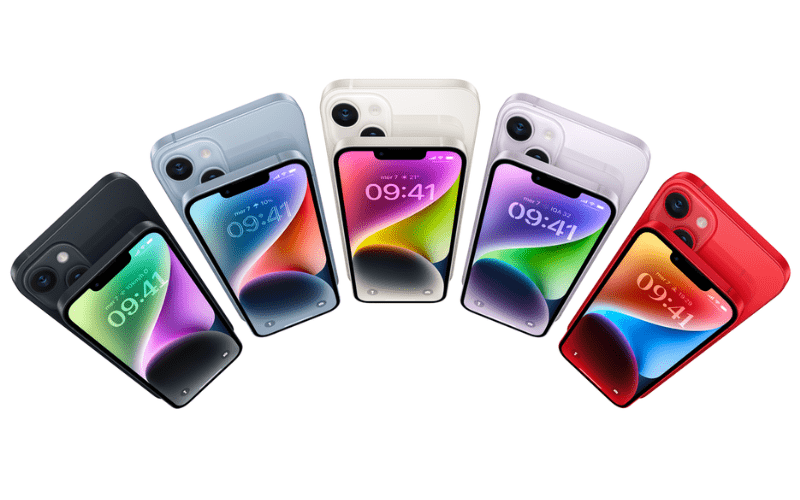 - iPhone 14, con display OLED da 6,1 pollici e due fotocamere