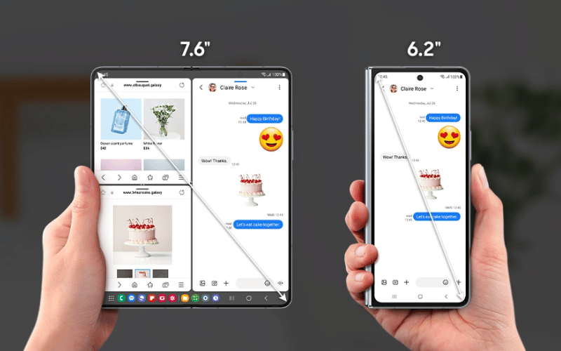 Per questo modello, top di gamma per Samsung, non si vociferano molti cambiamenti a livello estetico, se non tutti mirati a rendere lo smartphone più ergonomico e piacevole alla vista. I display previsti, quello esterno e interno, contano rispettivamente 6,2 e 7,6 pollici, entrambi con tecnologia Dynamic AMOLED. La cornice che racchiude i display dovrebbe ridursi, lasciando più spazio allo schermo.